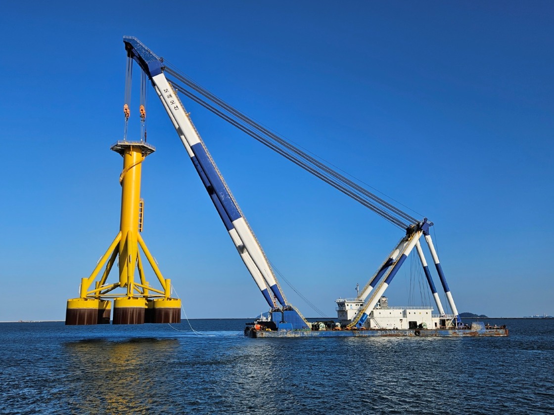 中国の洋上風力発電の施工現場にて、ケーブル接続工事に使われた